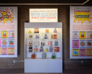 Vivamos Siempre Como Hermanos, by Feng-Feng Yeh and The Chinese Chorizo Project, honors over 100 Chinese grocery stores and small businesses that existed in downtown Tucson prior to urban renewal. This artist installation speaks to community, solidarity, and mutual aid cultivated within historic Chinese grocery stores in Tucson. The shelves within Vivamos are stocked with products that carry stories from the Chinese community in Tucson, which remember intimate and personal accounts of life at Chinese grocery stores. Throughout this space, engage with the history and contemporary implications of the Chinese immigrant experience from the late 1800s to the 1970s. In Tucson, this history is deeply connected to the region’s identities, urban development, and immigration policies.